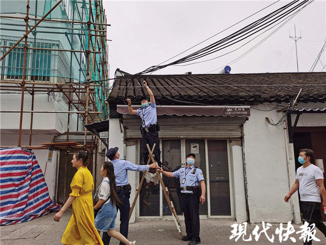 現(xiàn)代快報(bào)記者了解到,這三名警員都來自姑蘇分局虎丘派出所,巡邏途中接到求助稱:北浩弄內(nèi)一處電線墜落,吊在半空十分危險(xiǎn)。民警徐子能立即帶領(lǐng)兩名輔警趕到現(xiàn)場(chǎng)處置。