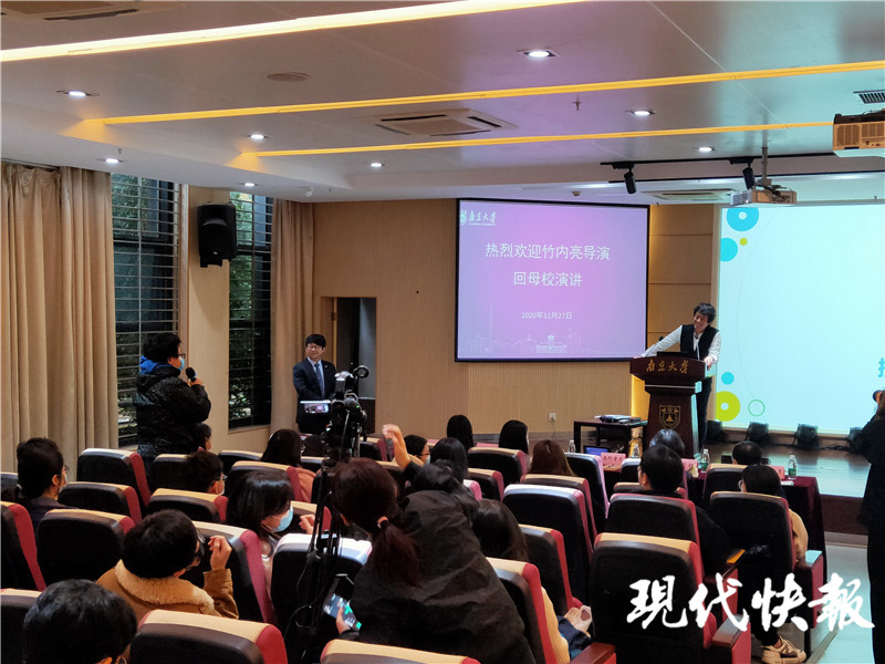 “說是回母校,但說來有點尷尬,我確實上過南京大學,但只上了兩個月,跟在座努力考上的同學不一樣,不過回母校依舊很高興。”演講一開場,竹內亮就用他詼諧幽默的演講方式,很快和在座的師生們打成一片。