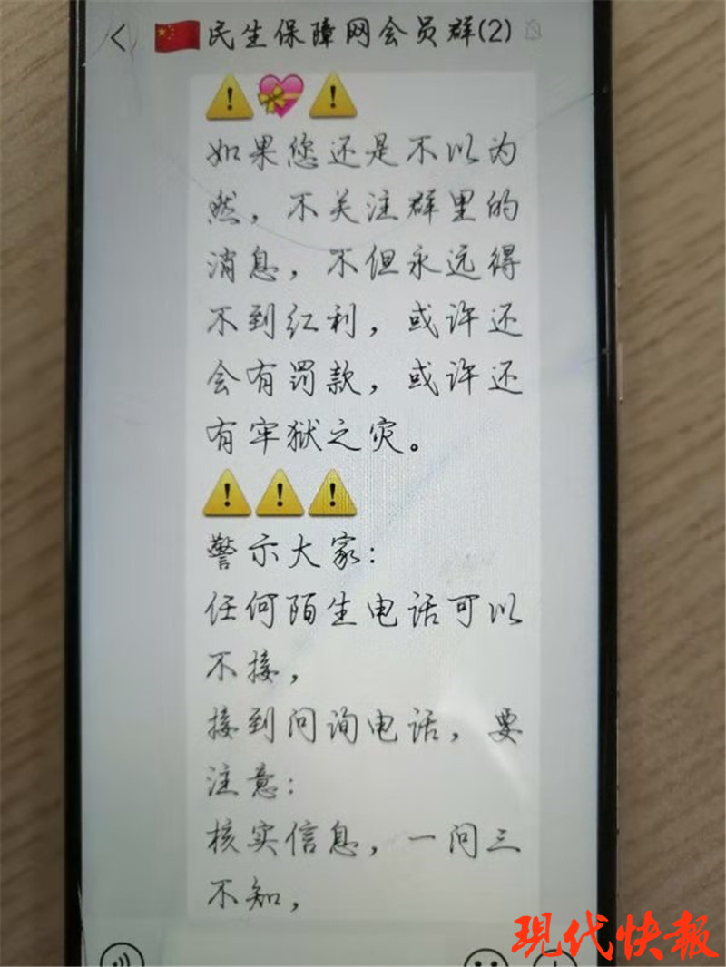 常州警方提醒廣大市民,當前我國沒有任何“民族資產(chǎn)解凍”類的項目,凡是打著類似民族資產(chǎn)解凍旗號進行斂財?shù)?,均是詐騙;凡是轉(zhuǎn)發(fā)鼓動、宣傳所謂民族資產(chǎn)解凍類相關信息或組建相關微信群、QQ群招募會員、收取費用的均涉嫌違法犯罪;凡是聲稱繳納數(shù)十元、上百元會費就能獲利數(shù)萬元、數(shù)十萬甚至數(shù)百萬的各類基金會、項目等,均是詐騙,公安機關將依法查處。請大家切實提高警惕,增強防范意識,嚴防此類詐騙,避免上當受騙和被犯罪分子利用。