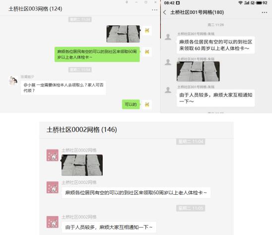 早在前幾天,網(wǎng)格員們就利用江小格微信群號召轄區(qū)60周歲以上的老人來到社區(qū)領(lǐng)取老人健康體檢卡。“一定要去社區(qū)領(lǐng)取嗎?”“家人可以代領(lǐng)嗎?”“體檢卡在哪里體檢?”......微信群里的消息滴滴不停,針對居民們提出的疑惑,網(wǎng)格員們在線一一回復(fù)。對于一些家中子女工作繁忙、不在身邊、自己年紀大了,腿腳又不便的老人,社區(qū)網(wǎng)格員為了免其來回奔波的辛苦,直接來到老人家中,把體檢卡親自送到老人的手中,向老人講解體檢卡的重要性,并叮囑老人體檢當天一定要空腹去體檢。老人們對網(wǎng)格員的貼心服務(wù)表示了感激之情,臨別之際,拉著網(wǎng)格員的手不住稱贊道,感謝社區(qū)長久以來對他們的關(guān)心照顧,在細微之處更是貼心關(guān)懷,讓我們的心里十分溫暖。
