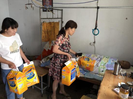七月的陽光火辣熱烈,但這絲毫沒有影響社區(qū)主任為民服務(wù)的心,活動當(dāng)天,呂主任、石主任一行人來到黃佩年老人的家中,詳細(xì)詢問老人的身體及生活健康狀況,并叮囑老人在日常生活中要好好保重身體。臨別之際,呂主任、石主任還把社區(qū)精心為老人準(zhǔn)備的尿不濕以及隔尿墊送給老人,希望這些生活用品能給老人的臥床生活帶來一絲便利。