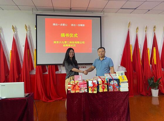 7月23日,“共建書香社區(qū)”捐書活動在南京市棲霞區(qū)馬群街道金陵驛社區(qū)舉行,愛心企業(yè)南京六九零二科技有限公司向金陵驛社區(qū)捐贈圖書500余冊,進一步豐富了社區(qū)圖書閱覽室的書籍資源。