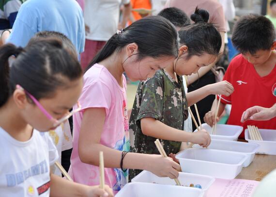 “恭喜獲勝!這是屬于你的小紅花。”剛剛在套圈游戲中連中三次的陳媱小朋友,一臉興奮的遞過門票,志愿者立即在反面粘上了代表勝利的標(biāo)志。下午五點(diǎn),一段激情澎湃的架子鼓表演吸引了往來的路人,由社區(qū)七彩少年帶來的打鼓、吉他彈唱,正式拉開活動帷幕。愛心義賣、泡泡體驗、墻繪,同時進(jìn)行。吹乒乓球競速、夾彈珠、套圈、翻紙牌等小游戲精彩紛呈。社區(qū)還提前為大家準(zhǔn)備了一片片西瓜解暑,孩子們本著節(jié)約的意識,每個人將拿到的西瓜吃得干干凈凈。