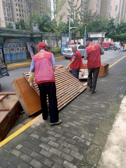 紅馬甲——文明志愿隊(duì)。文明志愿隊(duì)主要由黨員志愿者和居民志愿者組成。每天早上六點(diǎn),文明志愿者就集結(jié)完畢,一組開始清理樓道雜物,一層一層、一趟一趟地把雜物清理干凈;另一組則是一手拿著垃圾夾,一手拿著塑料袋,走走停停,將一路上隱藏在綠化帶等處的煙頭一一挑出收集。