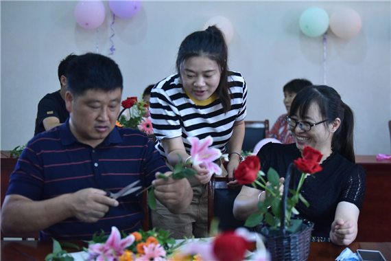 參與本次活動(dòng)的家庭中,有祖孫三代同堂的家庭,也有剛剛組建小家的夫妻家庭,50后、60后、70后、80后、90后、00后甚至10后,不同年代的謝村居民相聚一堂,分別代表著不同的時(shí)代、不同的家庭、不同的家風(fēng)家訓(xùn)。每一種花都有著不同的含義,誠實(shí)守信花、愛崗敬業(yè)花、鄰里友愛花、尊老愛幼花、勤儉節(jié)約花、勵(lì)志自強(qiáng)花、見義勇為花、助人為樂花……居民一邊在志愿者的指導(dǎo)下選擇主花朵進(jìn)行修枝和剪根,并根據(jù)上疏下茂、高深色低淡色的原則進(jìn)行插花創(chuàng)作;一邊互相交流著家庭和睦的相處之道,分享屬于自己家獨(dú)特的家風(fēng)家訓(xùn)。“勤儉節(jié)約是我們家的家風(fēng)。”社區(qū)居民夏蕾說道:“勤儉節(jié)約是中國人的一種傳統(tǒng)美德,是中華民族的優(yōu)良傳統(tǒng),從小父母就教育我要學(xué)會(huì)勤儉節(jié)約、吃苦耐勞,我以后也會(huì)這樣去教育我的孩子。”“清清白白做人,干干凈凈做事。”謝村社區(qū)老黨員王強(qiáng)向大家分享了自己家的家風(fēng),今天他們一家四代人都來參與了活動(dòng),最小的還在媽媽肚子里,一家人臉上是藏不住的幸福。