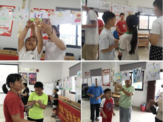 當天,隨著人員的陸續(xù)到來,社工給所有前來參觀本次成果展的村民都發(fā)放了評選貼紙,讓村民朋友們在觀賞之余給自己喜歡的作品背面投上支持的一票。隨后,青少年們和轄區(qū)村民們走進展覽現(xiàn)場,細細欣賞現(xiàn)場展出的所有作品,當青少年們在觀展的過程中發(fā)現(xiàn)自己的作品被展出時,紅撲撲的小臉蛋上更是洋溢著笑容,回過頭來向身邊的人們介紹著作品背后的法治故事,在他們的童言童語的介紹下,圍觀的人們也逐漸加深了對于法治知識的了解。