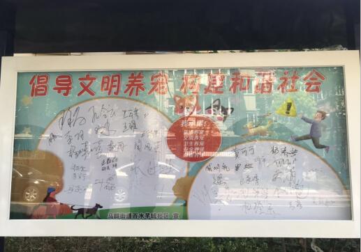 活動最后,在場的寵物主們在“倡導文明養(yǎng)寵 構(gòu)建和諧社會”我承諾看板上簽下了自己的名字,承諾依法養(yǎng)寵、文明養(yǎng)寵、衛(wèi)生養(yǎng)寵、安全養(yǎng)寵、健康養(yǎng)寵?;顒咏Y(jié)束后社區(qū)將宣傳看板放置在社區(qū)宣傳欄內(nèi)對外展示,希望喚起小區(qū)內(nèi)的寵物主們的自發(fā)參與“文明養(yǎng)寵”的意識。