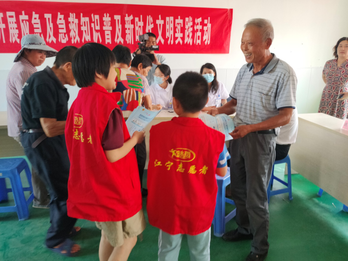 為了更好地普及老年人健康急救及應急知識,江寧區(qū)蒲公英青少年應急服務中心志愿者為大家進行了應急及急救知識普及,工作人員用淺顯、通俗的語言,生動、細致的向大家講授了突發(fā)事件的應急必備常識、急救須知、心肺復蘇方法等,并對心肺復蘇進行現(xiàn)場示范和操作訓練,邀請村民朋友實際操作,手把手教大家如何急救,現(xiàn)場氣氛十分熱烈。