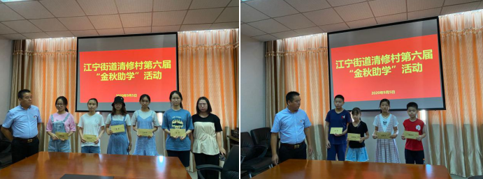 愛心無止境,助學見真情。此次活動中,清修村副主任首先向村內八位考上本科的學生們表示祝賀,希望他們在大學再接再厲,繼續(xù)努力學習,不畏將來,不念過往,始終堅定努力的方向與目標。隨后,副主任為轄區(qū)六個困難學生頒發(fā)助學金,祝福他們快樂學習,健康成長,并鼓勵他們向哥哥姐姐們學習,將來用實際行動感恩社會,回報社會。孩子們紛紛表示,一定會認真學習,感恩村內幫助,感恩社會,不辜負大家的期望。