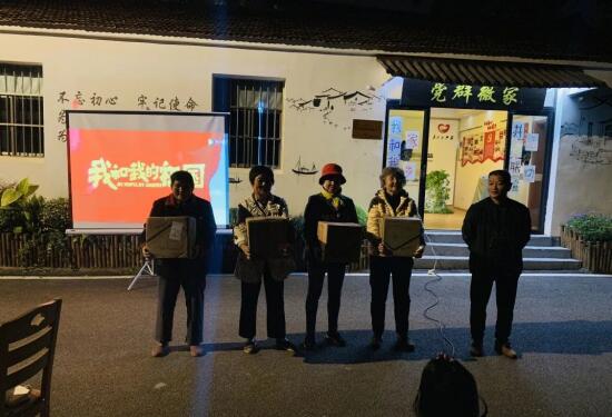 夜幕降臨,鄉(xiāng)村電影如約而至,村民們帶著小板凳簽到入場。垃圾分類關(guān)乎我們每一代人的健康生活,關(guān)乎每一個人的切身利益,大家一同觀看暖心短片回顧、垃分視頻,并為鄉(xiāng)村園丁頒獎。最終,在電影《我和我的祖國》中,結(jié)束了一天的活動。