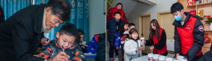 在孩子們認(rèn)真上課的同時,紅葉社工與南工程的志愿者們也在準(zhǔn)備社工奶茶的制作。孩子們下課后,志愿者將奶茶遞到孩子們的手上,社工茶溫暖了孩子們的心,使他們感受到了社會的關(guān)懷。這次的活動雖然是在冬日開展的,但傳遞出來的溫暖,卻足以融化冰雪,孩子們不僅學(xué)習(xí)到書法知識,還品嘗到社工的自制奶茶,收獲滿滿。