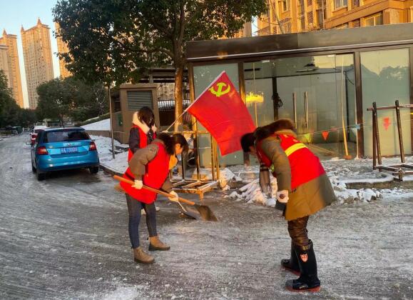 氣溫驟降,飄雪漸至,黨員、志愿者、物業(yè)工作人員持續(xù)忙碌著,躬著身子,拿著掃帚、鐵鍬,一鏟一掃的清理路上的積雪。社區(qū)黨員帶頭行動(dòng)直到凌晨,清除了小區(qū)門口的積雪,并在所有路口撒鹽,確保轄區(qū)居民正常出行。
