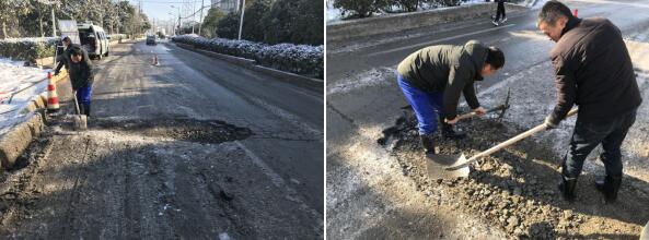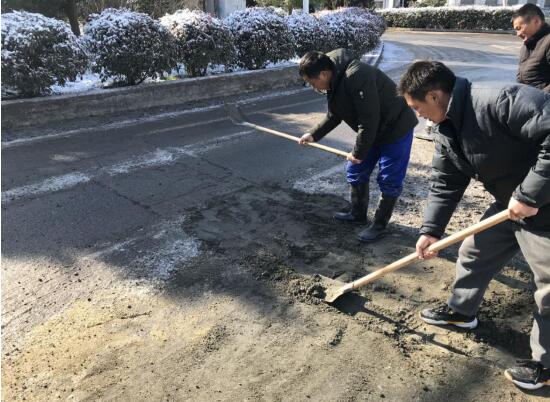 發(fā)現(xiàn)這個(gè)情況后,社區(qū)立即組織人員找來(lái)了幾袋水泥和黃沙客串起了“泥瓦匠”,對(duì)路面出現(xiàn)塌陷的路面全部挖開,重新填充修補(bǔ),對(duì)破損道路進(jìn)行了維修??吹缴鐓^(qū)志愿者們帶頭一起維修路面,許多附近的熱心居民也都紛紛加入到干活的隊(duì)伍中來(lái)。經(jīng)過(guò)了2個(gè)多小時(shí)的努力,破損坑洼的路面徹底抹平,路面平整干凈,得到居民的一致稱贊,錢大爺說(shuō)到:“社區(qū)現(xiàn)在辦事效率真是高,那么快就為我們修好了這條路,真是太好了!”
