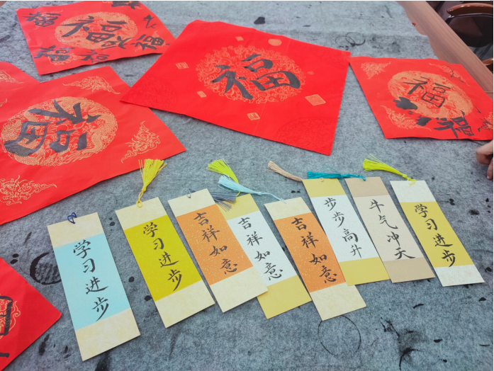 一枚枚制作精美,簡(jiǎn)潔大方的書簽在孩子們的巧手下誕生了。書簽精致小巧,一句句新年祝福如一張張笑臉,美麗綻放著。