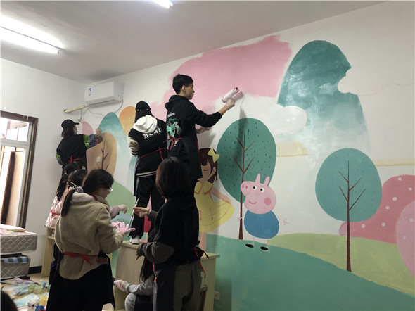 3月6日,由南京曉莊學(xué)院團(tuán)委策劃的主題為“行知圓夢·用心用手繪就一片藍(lán)天”殘疾人居室手繪公益活動,在君子殘疾人之家正式開展。本次活動,經(jīng)過為期2個月的籌備,邀請?zhí)厥鈨和逃龑<?、心理學(xué)專家、藝術(shù)設(shè)計專家親臨指導(dǎo),由南京曉莊學(xué)院美術(shù)系百名志愿者執(zhí)筆完成,設(shè)計創(chuàng)作了一系列不同主題的手繪作品,并成功為君子殘疾人之家殘疾學(xué)員10間臥室進(jìn)行美化改造。在這充滿溫情的“雷鋒月”,志愿者用實際行動來傳承和弘揚(yáng)雷鋒奉獻(xiàn)友愛、互助進(jìn)步的志愿精神,為殘疾孩子圓夢,為君子殘疾人之家的文化建設(shè)添上濃重一筆。