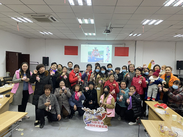 隨后,大家在志愿者的帶領(lǐng)下制作花飾,小心地將花瓣、絲帶粘貼在底座上,不一會各具特色的花飾就做好了。大家開心地合影留念,紛紛認為社區(qū)應多開展此類活動,提升居民生活品質(zhì)。