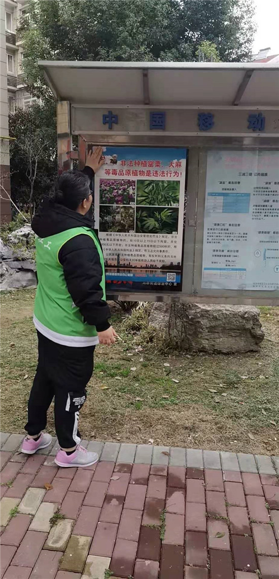 通過(guò)“掌上云”每天在社區(qū)掌上群推送宣傳信息,鼓勵(lì)居民積極舉報(bào)私自種植毒品原植物的行為;線下,社區(qū)在春水坊小廣場(chǎng)舉行了廣場(chǎng)宣傳活動(dòng),向居民發(fā)放了“珍愛(ài)生命 遠(yuǎn)離毒品”的宣傳冊(cè)。同時(shí),社區(qū)禁毒社工及“芊云匯”志愿者向居民宣傳了非法種植毒品原植物罌粟、大麻的危害性和違法性,并鼓勵(lì)居民積極參與到禁種鏟毒中,杜絕非法種植毒品原植物的違法行為的發(fā)生。
