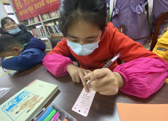 現(xiàn)場(chǎng),為了激發(fā)青少年參與活動(dòng)的積極性,還組織青少年們“DIY”書(shū)簽。裁剪紙條、勾勒框架,填充顏色......長(zhǎng)長(zhǎng)的紙條在青少年的創(chuàng)意繪制下組合成漂亮的書(shū)簽??粗约旱某善?,青少年們的臉上露出燦爛的笑容。