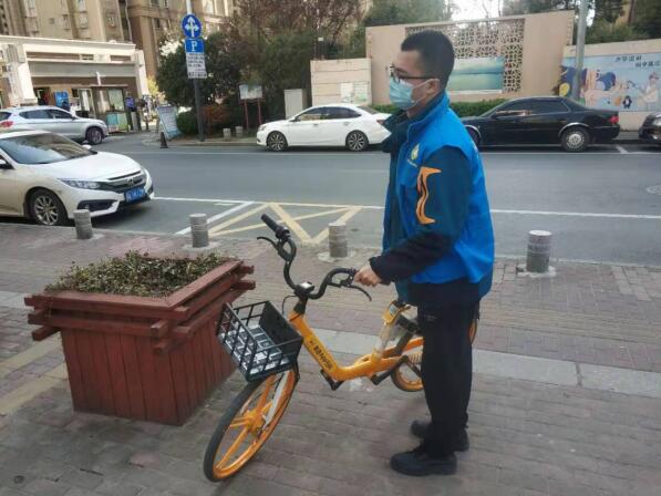 這是南京市棲霞區(qū)馬群街道蛇盤社區(qū)城市治理志愿者整治非機(jī)動(dòng)車行動(dòng)中的場景。