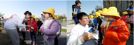 “我們的母親河發(fā)源于哪里?”“我知道,我來答!”這是知識問答游戲現(xiàn)場,頭戴“小黃帽”的孩子們正在舉手踴躍搶答著,吸引了不少行人駐足觀看。節(jié)水愛水是活動的一個主題,受到老師的啟發(fā),大家想出了許多日常生活中的節(jié)水小妙招:洗臉?biāo)⒀烙萌萜鞴?jié)水,洗衣服的水可以拖地,洗澡水可以沖馬桶,淘米水可以澆花、少用一次性塑料袋的白色垃圾等。在活動過程中,志愿者講述了一個“愛心放生”小故事,小朋友昊昊看到一個在河邊釣魚的叔叔桶里有一條受傷的小魚,見其可憐,于是央求媽媽將魚買下帶回家放在魚缸里照料。不料小魚病好后也沒什么精神,甚至還屢屢撞魚缸。昊昊不解,問媽媽。媽媽回答說魚兒也有家庭,它渴望和家人相聚。昊昊經(jīng)過心里斗爭,雖然十分不舍,但還是將魚兒放回秦淮河。