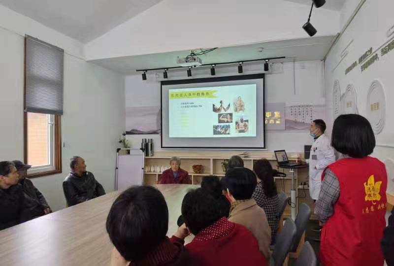 義診活動(dòng)開(kāi)始前,老年醫(yī)學(xué)科王權(quán)醫(yī)生首先給村民們舉辦了一場(chǎng)關(guān)于“肌少癥防治”的科普講座,為村民們講解了什么是“肌少癥”、肌少癥的表現(xiàn)和危害及防治策略等專業(yè)知識(shí)。特別是從營(yíng)養(yǎng)學(xué)的角度,向村民們普及如何通過(guò)飲食調(diào)整增加營(yíng)養(yǎng),以達(dá)到預(yù)防和治療肌少癥的目的,提高老年人的健康防病意識(shí)。