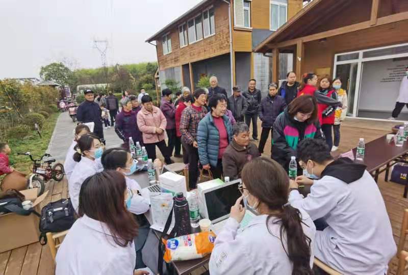 此次活動(dòng)由逸夫醫(yī)院老年醫(yī)學(xué)科、內(nèi)分泌科、呼吸科、營(yíng)養(yǎng)科以及骨科的醫(yī)護(hù)人員組成了專業(yè)的義診團(tuán)隊(duì),現(xiàn)場(chǎng)為村民們提供肌少癥篩查、肌少癥防治健康講座、測(cè)血糖、量血壓以及老年人運(yùn)動(dòng)和營(yíng)養(yǎng)咨詢指導(dǎo)等服務(wù)。