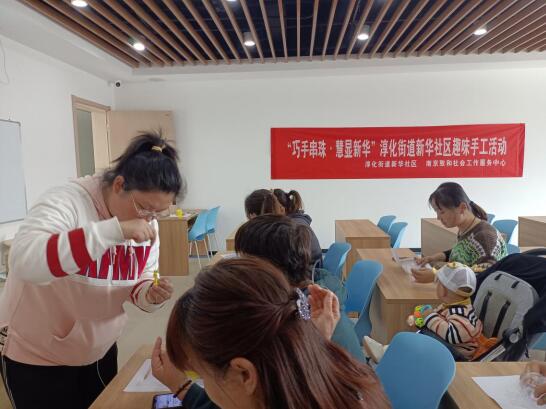 手工串珠活動(dòng)在展現(xiàn)女性智慧的同時(shí),也能夠豐富社區(qū)女性居民的閑暇生活,增添生活樂(lè)趣,營(yíng)造和諧快樂(lè)的社區(qū)氛圍。3月29日,南京市江寧區(qū)淳化街道新華社區(qū)聯(lián)合南京致和社會(huì)工作服務(wù)中心組織開(kāi)展“巧手串珠·慧顯新華”趣味手工活動(dòng)。