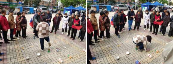 賽場(chǎng)上老人們興致高昂、各顯身手,現(xiàn)場(chǎng)氣氛熱鬧非凡?;顒?dòng)開始前,社工帶著老人們做起熱身運(yùn)動(dòng),大家一起伴隨著音樂活動(dòng)著筋骨。趣味運(yùn)動(dòng)環(huán)節(jié),根據(jù)老年人的年齡和身體狀況,設(shè)置了投壺和套圈兩個(gè)項(xiàng)目。投壺比賽中,老人們躍躍欲試,現(xiàn)場(chǎng)也隨著命中情況,感慨著、歡呼著、惋惜著……另一邊的套圈場(chǎng)地,“老小孩”們個(gè)個(gè)身手矯健,有順序的排著隊(duì),互相攙扶,互相加油,到處洋溢著談笑聲、歡呼聲和此起彼伏的加油聲,氣氛熱烈而融洽。