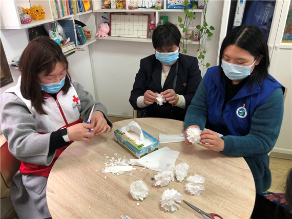 一大早,網(wǎng)格員、志愿者就在辦公室手工制作小白花,以祭英魂。9點整,網(wǎng)格員和交通幼兒園大班全體師生出發(fā)前往竹山林園,網(wǎng)格員為了保障孩童安全,自發(fā)組成人墻,在斑馬線上為孩子們保駕護航。