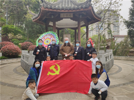 活動中,社區(qū)網(wǎng)格員、黨員、志愿者、老師帶領(lǐng)幼兒向鄧仲銘烈士默哀獻花,在幼兒心中厚植愛黨愛國愛社會主義情懷,教育幼兒緬懷革命先烈事跡,發(fā)揚革命傳統(tǒng),弘揚愛國主義精神,引導(dǎo)小朋友樹立正確的世界觀、人生觀、價值觀,努力成長為中國特色社會主義事業(yè)建設(shè)者和接班人。