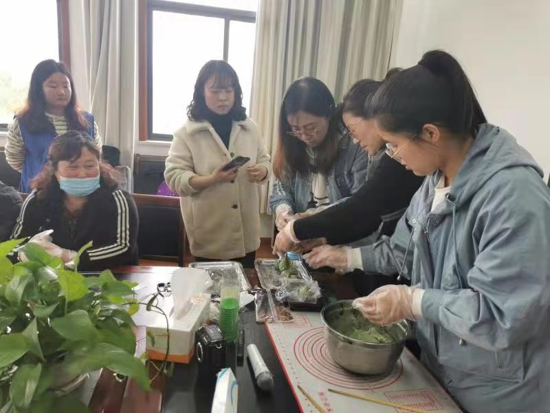 又是一年清明至。清明,總與微雨和杏花相伴,有懷念的感傷,亦有對(duì)欣欣向榮的期待與接納。清明節(jié)與寒食節(jié)前后相隨,正是“春城無(wú)處不飛花,寒食東風(fēng)御柳斜”的時(shí)節(jié)。在江南,青團(tuán)便是清明之際一個(gè)孩子內(nèi)心無(wú)法言說(shuō)卻又最熱烈的渴盼。碧青油綠,甘甜細(xì)膩,清香爽口,青團(tuán)從色彩到口感都有著滿滿的春天味道?;顒?dòng)中,志愿者首先向居民們簡(jiǎn)單介紹了清明節(jié)吃青團(tuán)的來(lái)歷,接著將制作青團(tuán)的材料擺上桌,向大家展示青團(tuán)制作過(guò)程,現(xiàn)場(chǎng)氣氛立刻活躍了起來(lái),居民們自告奮勇擼起袖子、洗凈手,將糯米粉、蔬菜汁放入盆中,倒入開(kāi)水,攪拌均勻,并揉成團(tuán)。在志愿者的指導(dǎo)下,居民也學(xué)得有模有樣,不一會(huì)兒一個(gè)個(gè)碧綠的青團(tuán)就完成了,盡管有些形狀各異、有些餡料都跑到外面了,但是自己親手制作的總是很有意義。