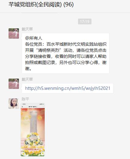 百水芊城社區(qū)黨委組織社區(qū)黨員參與“線上祭英烈”活動(dòng),社區(qū)團(tuán)支部還隨同馬群街道團(tuán)委前往桂子山烈士陵園祭掃革命先烈。同時(shí)社區(qū)關(guān)工委也組織青少年開展“網(wǎng)上祭英烈”獻(xiàn)花活動(dòng),學(xué)習(xí)弘揚(yáng)革命先烈的精神,引導(dǎo)黨員群眾和青少年們堅(jiān)定理想信念,以實(shí)際行動(dòng)許黨報(bào)國。