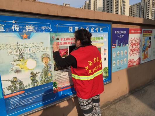 為強(qiáng)化轄區(qū)居民禁毒防毒意識(shí),進(jìn)一步做好禁毒宣傳工作,近日,南京市棲霞區(qū)燕子磯街道燕子磯社區(qū)組織禁毒社工在各個(gè)轄區(qū)張貼禁毒宣傳海報(bào)。