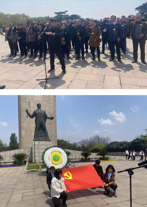 在莊嚴(yán)肅穆的雨花臺烈士就義群雕前,講解員向大家講述了烈士就義群雕的由來和革命歷史。在紀(jì)念碑前,全體黨員和工作人員整齊肅立,低頭默哀,以此緬懷革命先烈的不朽功績,寄托對革命烈士的深切哀思。在黨旗下,黨員們重溫入黨誓詞,隨后緩步繞行紀(jì)念碑一周,向革命烈士致以崇高敬意。