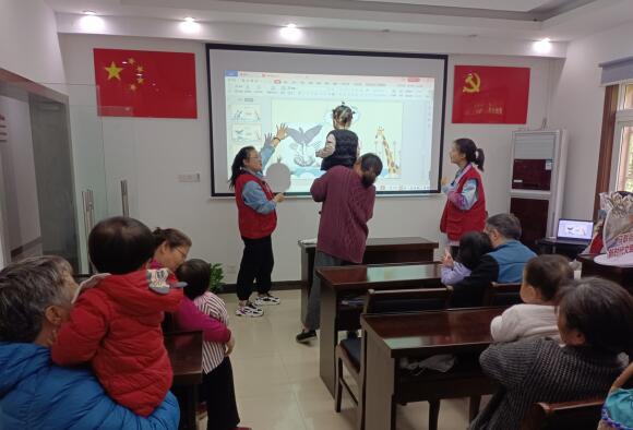 課堂在趣味手影游戲中拉開帷幕。“音樂教育在幼兒教育中占有重要的位置。音樂能直接地影響人們,特別是影響兒童的感情,這對孩子認識周圍世界有著特殊的作用。”課上,志愿者老師首先向幼兒家長們簡要介紹了音樂在幼兒成長中的作用,引導和鼓勵家長們重視學前音樂教育。在兒歌賞析環(huán)節(jié),志愿者老師帶領(lǐng)幼兒們一起跟唱,并進行了簡單的肢體律動,現(xiàn)場充滿了歡快的氣氛。