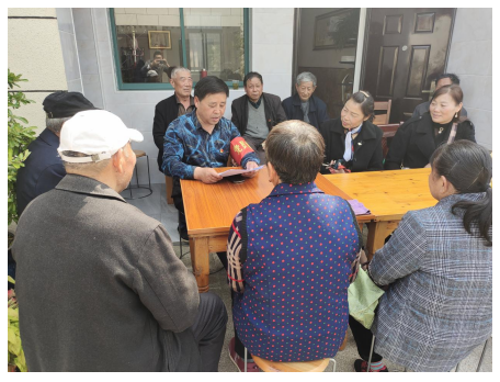 “1928年4月28日,歷經(jīng)千難萬險(xiǎn)之后,毛澤東率領(lǐng)的秋收起義部隊(duì),和朱德、陳毅領(lǐng)導(dǎo)的湘南起義和南昌起義部分部隊(duì)最終在井岡山勝利會(huì)師!”,張溪社區(qū)礱篰塘村一座環(huán)境優(yōu)美的庭院內(nèi),社區(qū)的黨員宣講員-----退休干部、老黨員彭德喜正在給黨員和群眾講述井岡山精神。