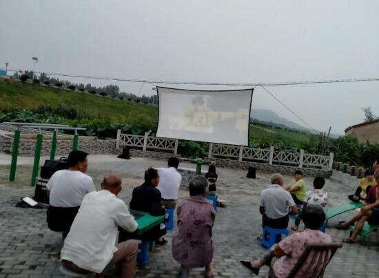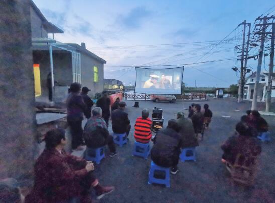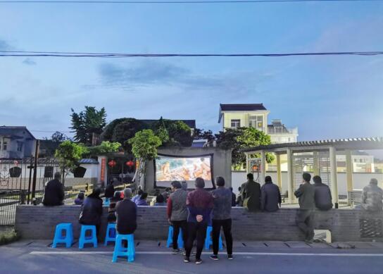 民主村地處南京邊界,距離城里最近的電影院開車也要50分鐘車程,很多年齡大的村民一輩子也沒去電影院看過一場電影,通過露天電影的方式,讓電影文化走進(jìn)千家萬戶,讓腿腳不便的老年人、沒有時(shí)間精力的中年人、沒有機(jī)會與條件的留守兒童都能看上電影,既傳播了正能量,又豐富了村民們飯后文化生活。