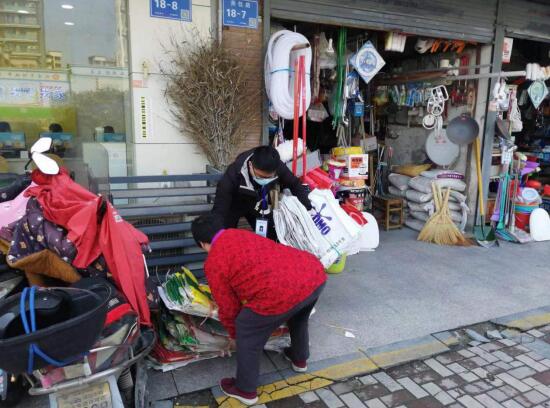 整治行動中,社區(qū)工作人員、城市治理志愿者向商鋪店主耐心講解“門前三包”責任制的有關內(nèi)容,積極宣傳城市管理規(guī)定;同時以落實“門前三包”為重點,以步巡和車巡的方式相結(jié)合,不間斷對轄區(qū)沿街商鋪“門前三包”落實情況進行巡查,做到發(fā)現(xiàn)一處,清理一處。在整治行動中,金堯花園社區(qū)重點對轄區(qū)主次干道沿線商鋪所存在的出店經(jīng)營、亂設置廣告、亂堆亂放等現(xiàn)象進行整治,街道公眾委員劉石城配合社區(qū)工作人員、城市治理志愿者對店外經(jīng)營、亂堆亂放、衛(wèi)生情況差等現(xiàn)象進行治理,并現(xiàn)場督促商戶整改。