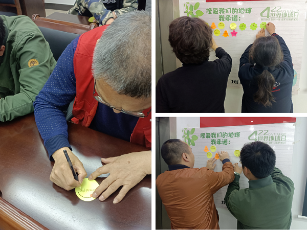 活動中,社區(qū)科普志愿者通過視頻播放和知識講解, 向社區(qū)居民介紹了世界地球日的由來、人類活動對地球環(huán)境和生態(tài)系統(tǒng)的影響及以我們賴以生存的地球的現(xiàn)狀,倡導居民以實際行動保護地球資源和自己的生存環(huán)境,并分享了綠色環(huán)保相關知識,如:使用節(jié)能燈、購物自帶環(huán)保袋、拒絕過度包裝、廢物再利用、垃圾分類投放等。最后,大家莊嚴地寫下自己的環(huán)保承諾,并一一上臺進行了張貼展示。大家表示:“會自覺將承諾轉(zhuǎn)化為實際行動,從日常生活點滴做起,節(jié)約能源,保護環(huán)境,減少污染,共同守護地球母親。