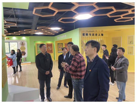 隨后,一行人又前往西洋湖養(yǎng)蜂合作社聯(lián)合黨支部參觀蜜蜂科普館,了解到關(guān)于蜜蜂以及蜂蜜釀造過(guò)程的科普知識(shí),在參觀交流中學(xué)習(xí)蜜蜂勤勞勇敢、無(wú)私奉獻(xiàn)的精神。最后,志愿者為一行人送上了黨史學(xué)習(xí)書籍,并以將革命故事的形式,邀請(qǐng)退伍老兵為一行人講述抗戰(zhàn)英雄張耀華的事跡,讓大家進(jìn)一步了解了耀華社區(qū)命名的由來(lái),深入了解革命烈士們保家衛(wèi)國(guó)、守護(hù)人民、敢于犧牲的精神內(nèi)涵。