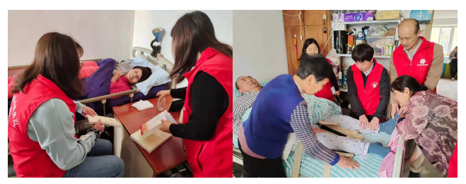 高位截癱村民賈永建高興地說,你們又來了,說話間,志愿者李維明就熟練地為賈永健按摩腿,并對他帶來一點蔬菜送給他;獨自住在新民花苑6層的90高齡視力高度近視的老人鄧可英聽到我們的聲音,可高興了,聽說我們?yōu)樗郎?zhǔn)備了蔬菜,說這下我可不用請鄰居幫我買了。