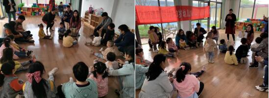 0-3歲是孩子成長的黃金階段,作為一個(gè)社會(huì)人的所有基礎(chǔ)的奠定,在嬰幼兒時(shí)期的效率是最高的?;顒?dòng)伊始,老師親切地問孩子們的名字,在粘貼紙上寫上孩子的名字,在接下來的課堂上用《Hello之歌》先讓每個(gè)孩子被大家認(rèn)識(shí),讓孩子們覺得自己是被重視的,有利于孩子們在課上專注。隨后,老師與大家進(jìn)行繪本閱讀,老師通過講故事的方式讓孩子們有興趣,吸引孩子們到身邊一起參與閱讀,鍛煉孩子的膽量,訓(xùn)練孩子的語言能力。閱讀過程中,老師傳授給家長教育技巧。老師告訴他們要讓孩子看到同伴的行為,讓他們互相影響,互相學(xué)習(xí),就會(huì)潛移默化的影響行為,鍛煉自主能力。
