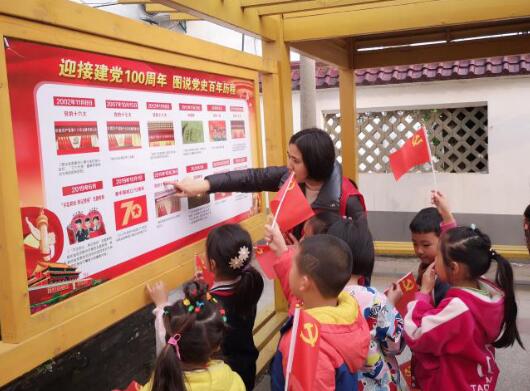 為發(fā)揚(yáng)優(yōu)良的革命理念,牢記立德樹(shù)人初心、堅(jiān)定愛(ài)黨、愛(ài)國(guó)理想信念,南京市江寧區(qū)東山街道高橋社區(qū)開(kāi)展“高橋娃娃學(xué)黨史”學(xué)習(xí)教育,志愿者帶領(lǐng)孩子們來(lái)到前潘村學(xué)習(xí)長(zhǎng)廊學(xué)習(xí)百年歷史。