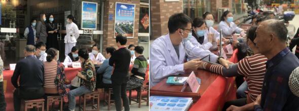 活動(dòng)在芙閣新村東山小學(xué)對(duì)面的空地上進(jìn)行,在社區(qū)工作人員的前期宣傳下,社區(qū)居民紛紛參與到此次便民利民活動(dòng)中來(lái)?;顒?dòng)開始后,東山社區(qū)圍繞本次活動(dòng)主題,通過(guò)發(fā)放折頁(yè)、免費(fèi)咨詢等方式進(jìn)行相關(guān)健康教育知識(shí)的宣傳。東山街道社區(qū)衛(wèi)生服務(wù)中心的醫(yī)務(wù)人員現(xiàn)場(chǎng)為社區(qū)居民提供免費(fèi)測(cè)量血壓、義診及健康咨詢志愿服務(wù)。居民們?cè)谥驹刚叩囊龑?dǎo)下有序排隊(duì),現(xiàn)場(chǎng)氣氛和諧。對(duì)有需求的群眾,醫(yī)務(wù)人員現(xiàn)場(chǎng)進(jìn)行簡(jiǎn)單的中醫(yī)推拿服務(wù),并提出進(jìn)一步的解決方案,叮囑居民身體上的不適要及時(shí)到醫(yī)院檢查。