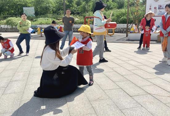 “準(zhǔn)備好了嗎?時(shí)刻準(zhǔn)備著,我們都是共產(chǎn)兒童團(tuán)……”伴著《共產(chǎn)黨兒童團(tuán)歌》的歌聲中,所有參與活動(dòng)的家長們,也一起唱起兒時(shí)的這首紅色歌曲,一旁的青少年們合著紅色