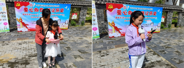 活動現(xiàn)場,孩子們和家長在工作人員的引導(dǎo)下,以孩子們喜歡的故事為出發(fā)點,三組家庭上前共讀紅色經(jīng)典故事。在場的家長和孩子們共同讀黨史、感黨恩,在閱讀中回顧黨的光輝歷程,感受共產(chǎn)黨人心中所傳遞的永不磨滅的光芒。接下來,在工作人員的鼓勵下,孩子們自由上前進(jìn)行詩歌朗誦,從紅色經(jīng)典中汲取精神營養(yǎng),厚植家國情懷。