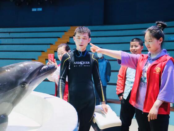 “每年5月第3個星期日是全國助殘日。今年全國助殘日主題為‘鞏固殘疾人脫貧成果,提高殘疾人生活質(zhì)量’,我們呼吁全社會的市民朋友們一起來關(guān)心幫助這些特殊小伙伴,擦亮殘疾人生活的幸福底色。”本次活動的策劃組織者之一、南京曉莊學(xué)院團(tuán)委書記鄧琦表示,“今年春天,南京曉莊學(xué)院團(tuán)委策劃了主題為‘行知圓夢·用心用手繪就一片藍(lán)天’殘疾人居室手繪公益活動,百名曉莊學(xué)生志愿者為殘疾學(xué)員10間臥室進(jìn)行美化改造。在與殘疾人交流互動過程中,好幾位表示特別喜歡海豚和鯨魚,特別期待有機(jī)會親眼看一看海洋動物,于是有了促成他們參觀南京海底世界的想法。”
