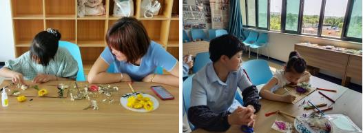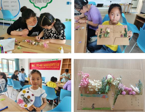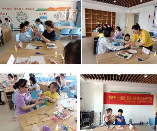 小朋友們發(fā)揮創(chuàng)意制作古風(fēng)四季團(tuán)扇和卡片,寫下想和媽媽說的心里話,并送給媽媽。小朋友們安排著手中的干花材料,在團(tuán)扇和卡片上先組合好,媽媽在一旁出謀劃策,協(xié)助小朋友們將干花粘在團(tuán)扇和卡片上。
