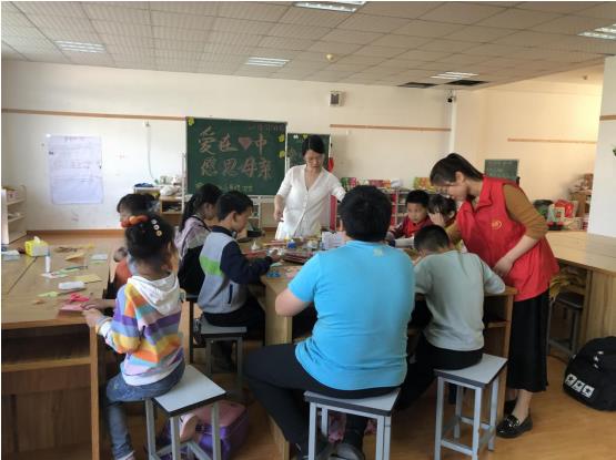 現(xiàn)場,志愿者用通俗易懂的語言講解了母親節(jié)的由來和習(xí)俗,并認(rèn)識了西方的母親花康乃馨和中國的母親花萱草花,希望孩子們能夠一直懷著感恩之心孝敬父母,同時鼓勵小朋友們勇敢表達(dá)自己的愛意;緊接著,志愿者介紹此次手工材料,一邊講解一邊示范,孩子們聽的非常認(rèn)真,迫不及待要自己動手制作,只見一張張簡單的彩紙?jiān)诤⒆觽冹`巧的雙手下,變幻出一朵朵美麗的母親花,孩子們看著自己努力的成果,臉上洋溢著幸福的笑容。