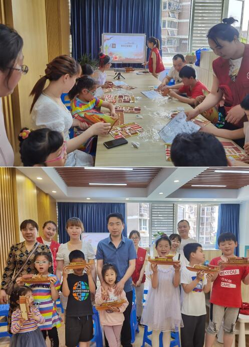 活動伊始是黨史親子問答比賽環(huán)節(jié),每個家庭在比拼過程中,你追我趕,互不示弱,將現(xiàn)場氣氛推向高潮,經(jīng)過激烈角逐,最終由我們?nèi)栃∨笥咽Y雨軒奪得優(yōu)勝。 比賽結(jié)束后,社區(qū)的志愿者帶領(lǐng)小朋友和家長一起學習了紅船精神的內(nèi)涵:開天辟地、敢為人先的首創(chuàng)精神;堅定理想、百折不撓的奮斗精神;立黨為公、忠誠為民的奉獻精神。同時為了加深對紅船精神的記憶,每個小朋友在志愿者和家長的幫助下開始制作紅船紙模,通過積極動腦,虛心求教。最終,一艘艘精巧美觀,栩栩如生地紅船誕生了!